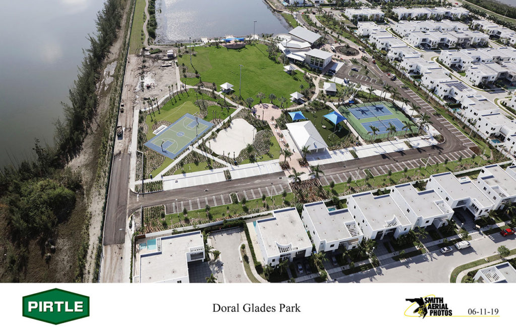 Services requested by City of Doral included design, permitting, and construction services of site development and infrastructure elements for a nature center with pedestrian docks, kayak launch, tennis and basketball courts, a multipurpose field, playgrounds, roadways, parking, and concrete walks to create connectivity to the park.